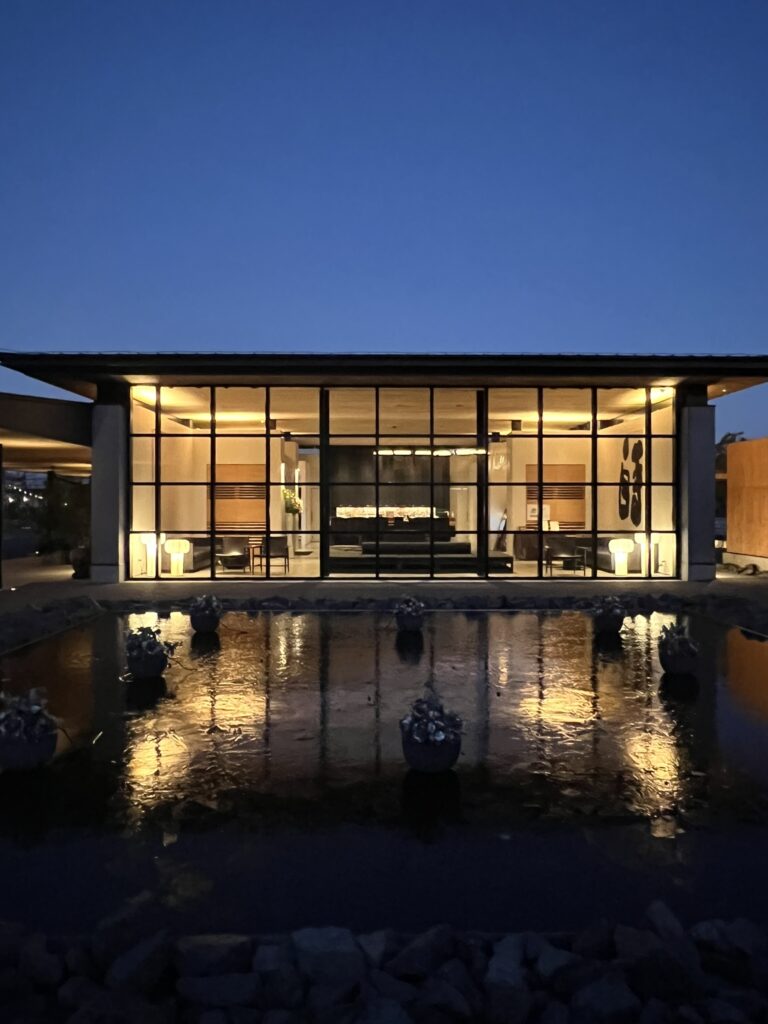 👆空が暗い時の、ホテルフロント。おしゃれですね~~~